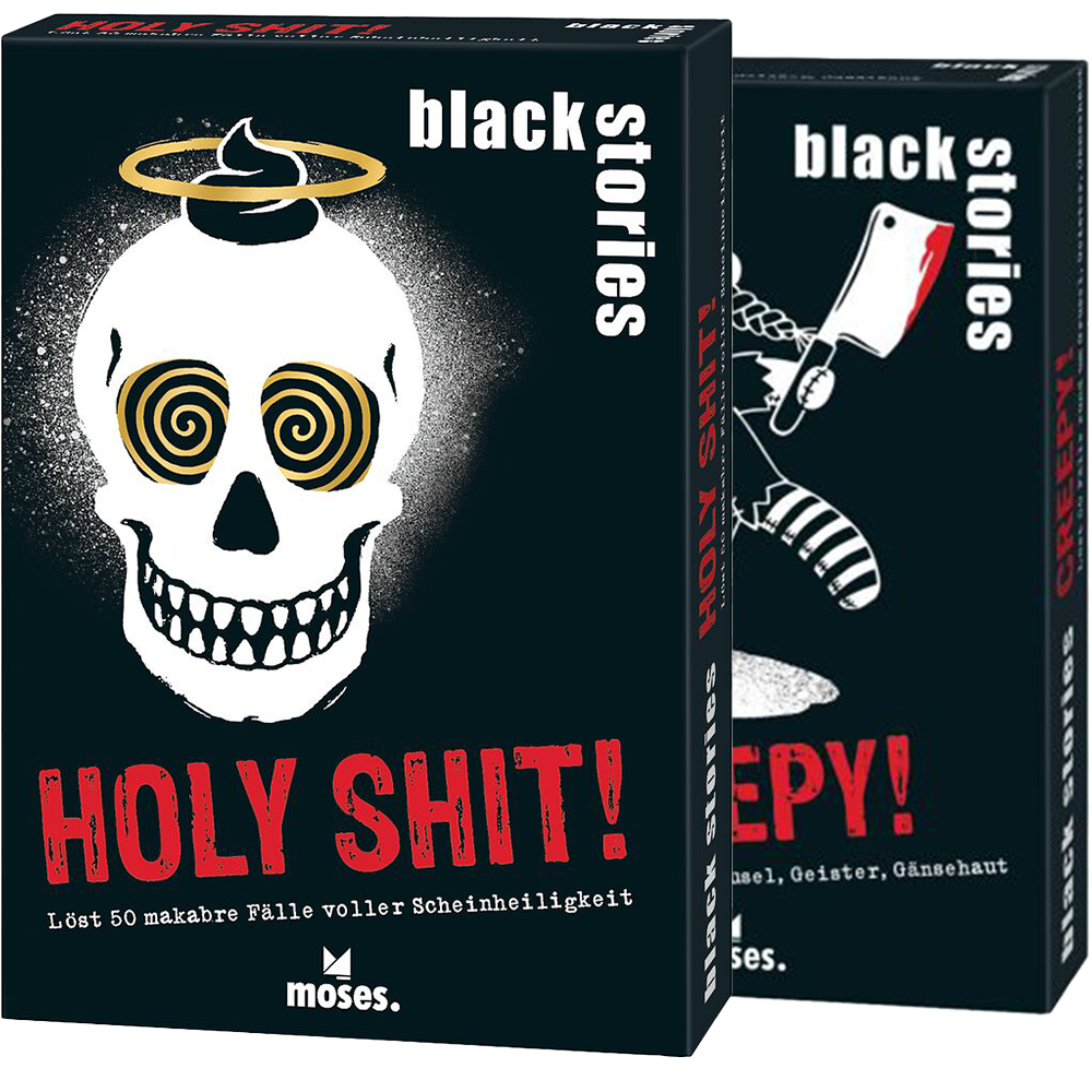 Black Stories sind eine beliebte Reihe kniffliger, morbider Kartenspiele von Holger Bösch und dem Moses Verlag, bei denen eine Person (der "Gebieter" oder "Spielleiter") den anderen Spielern eine rätselhafte, oft makabre Geschichte vorliest. Die anderen Spieler müssen dann durch Ja/Nein-Fragen herausfinden, wie und warum das beschriebene Ereignis stattgefunden hat. Die Spiele gibt es in verschiedenen Editionen, darunter auch für Kinder, und sie sind auch als "Denkpuzzles" oder "Lateralrätsel" bekannt.